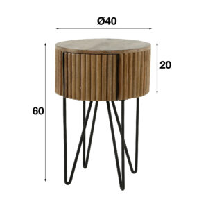 Staliukas tinka mažesniam miegamajam kambariui, nes jis yra kompaktiškas- 30×30 cm. Metalinis rėmas, akacijos mediena.