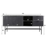 Komoda iš mango medienos, kojos iš metalo.2 durelės, 2 stalčiai, atviras skyrius su 2 lentynom. Marina serijos dalis.
