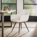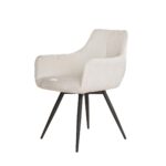 Šis pasukamas fotelis turi metalinį rėmą .kėdė apmušta boucle audiniu. Dviejų spalvų : Balta ir smėlio.