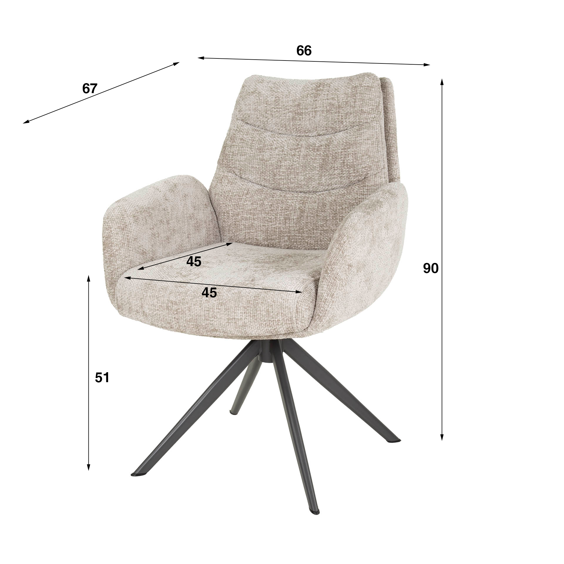 Prabangus Lounge fotelis aptrauktas šiurkščiai austu šeniliniu audiniu.Kišeninių spyruoklių sėdynė užtikrina optimalų komfortą, o 360 l. pasukamas pagrindas su automatinio grįžimo funkcija – dar patogesnį naudojimą.