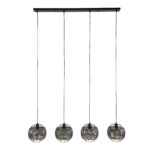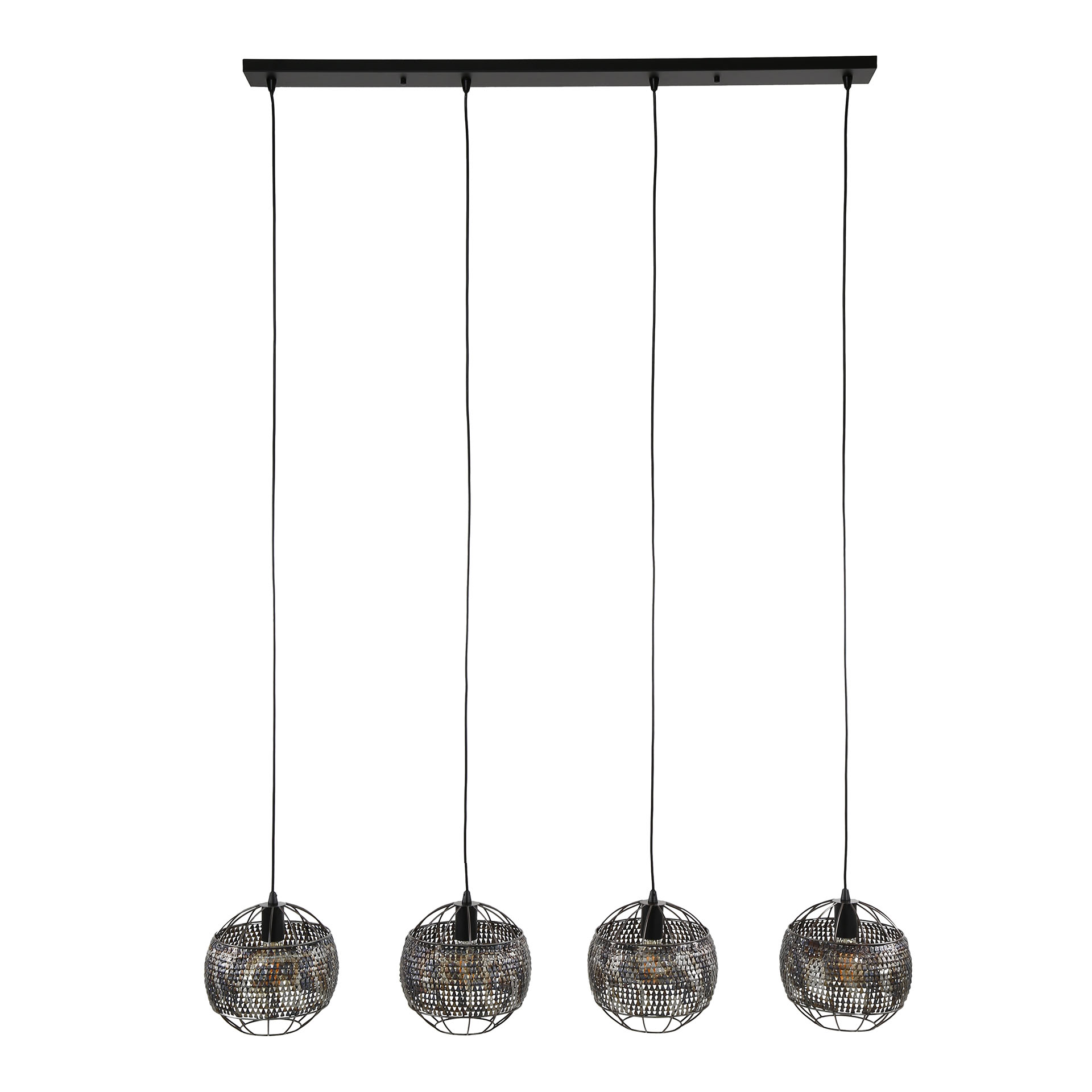 3 metaliniai gaubtai .Paviršius lyg apdegęs. Todėl išgaunama juodai ruda spalva. Visiškai tankų darbo. Kiekvienas šviestuvas unikalus. Dėl mažų skylučių šviestuvas tampa pusiau permatomas. Šviesa pasklinda visoje patalpoje. Plotis-135 cm, gylis 25 , aukštis iki 150 cm.
