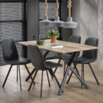Šis valgomojo stalas pagamintas iš MDF ,padengtas 3D šviesaus ąžuolo vaizdo sluoksniu.Plieno kojos.