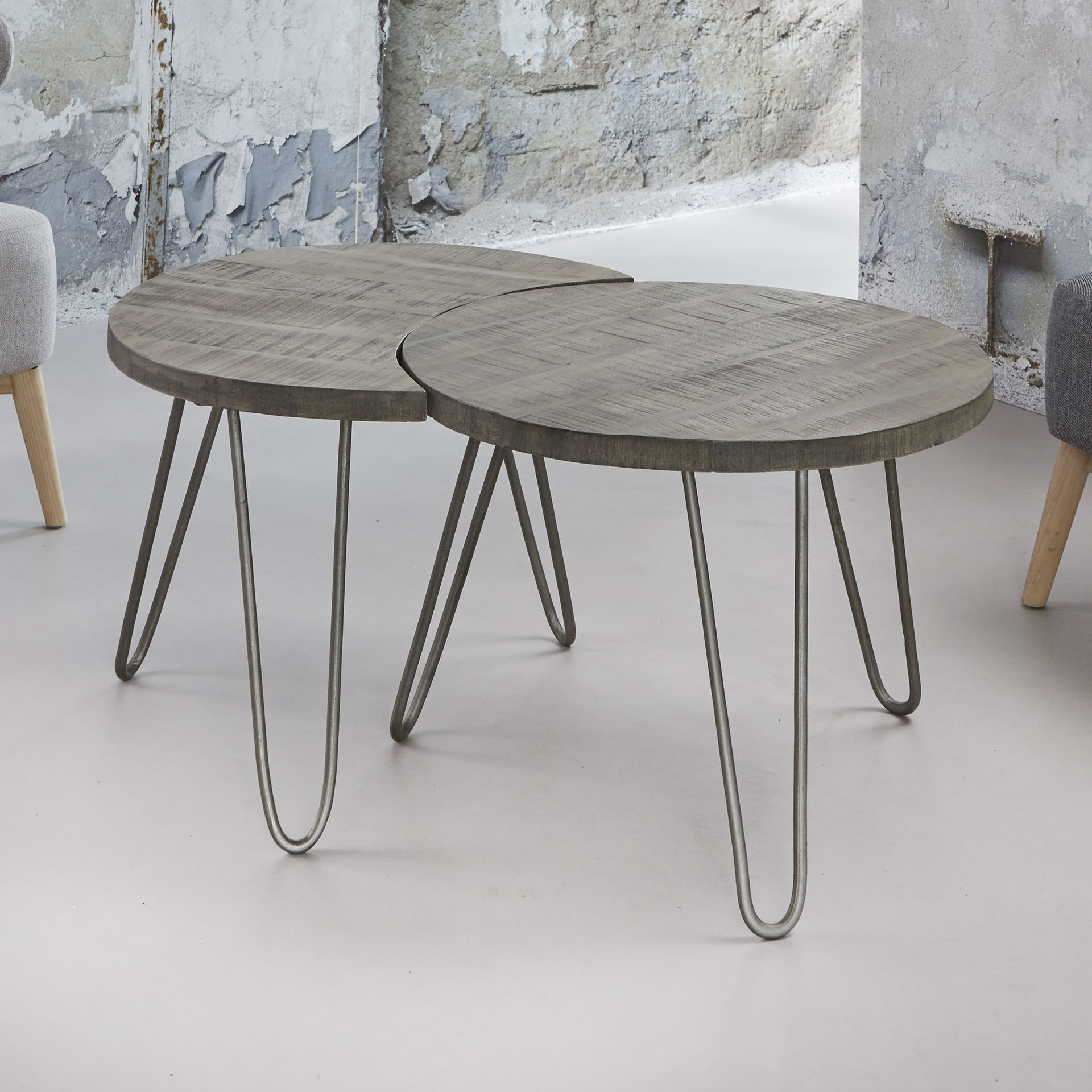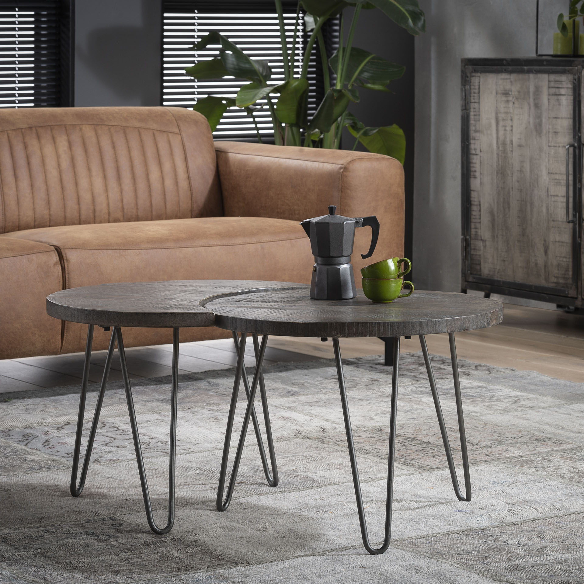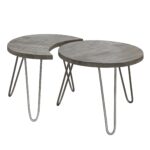 Šis žurnalinis staliukas susideda iš 2-jų atskirų stalelių ,todėl yra universalus. Stalviršis iš mango masyvo. Plieno kojos.
