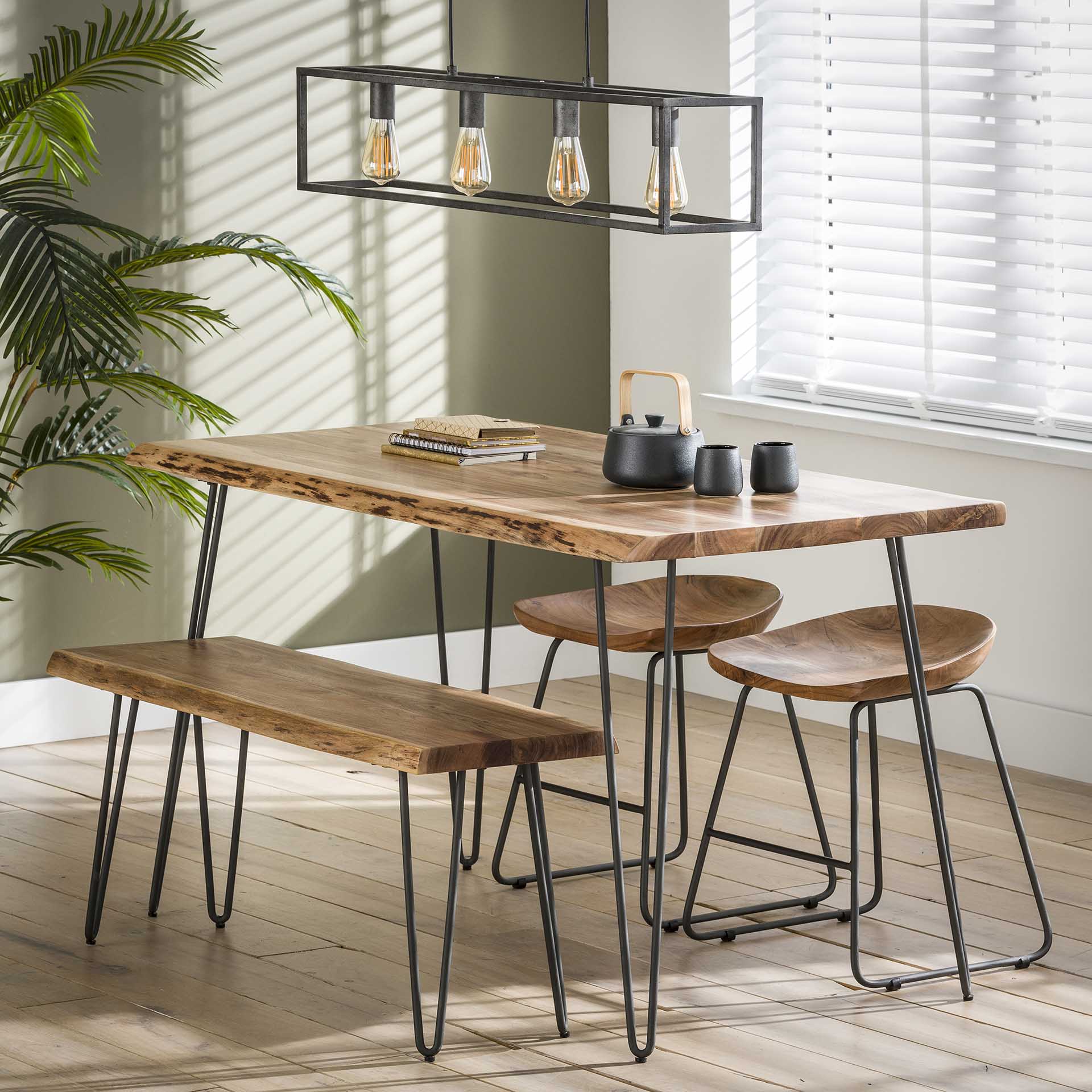 Ypač tinka mažam kambariui.Pagamintas iš akacijos medienos.Sėdynė turi natūralų kamieno kraštą.