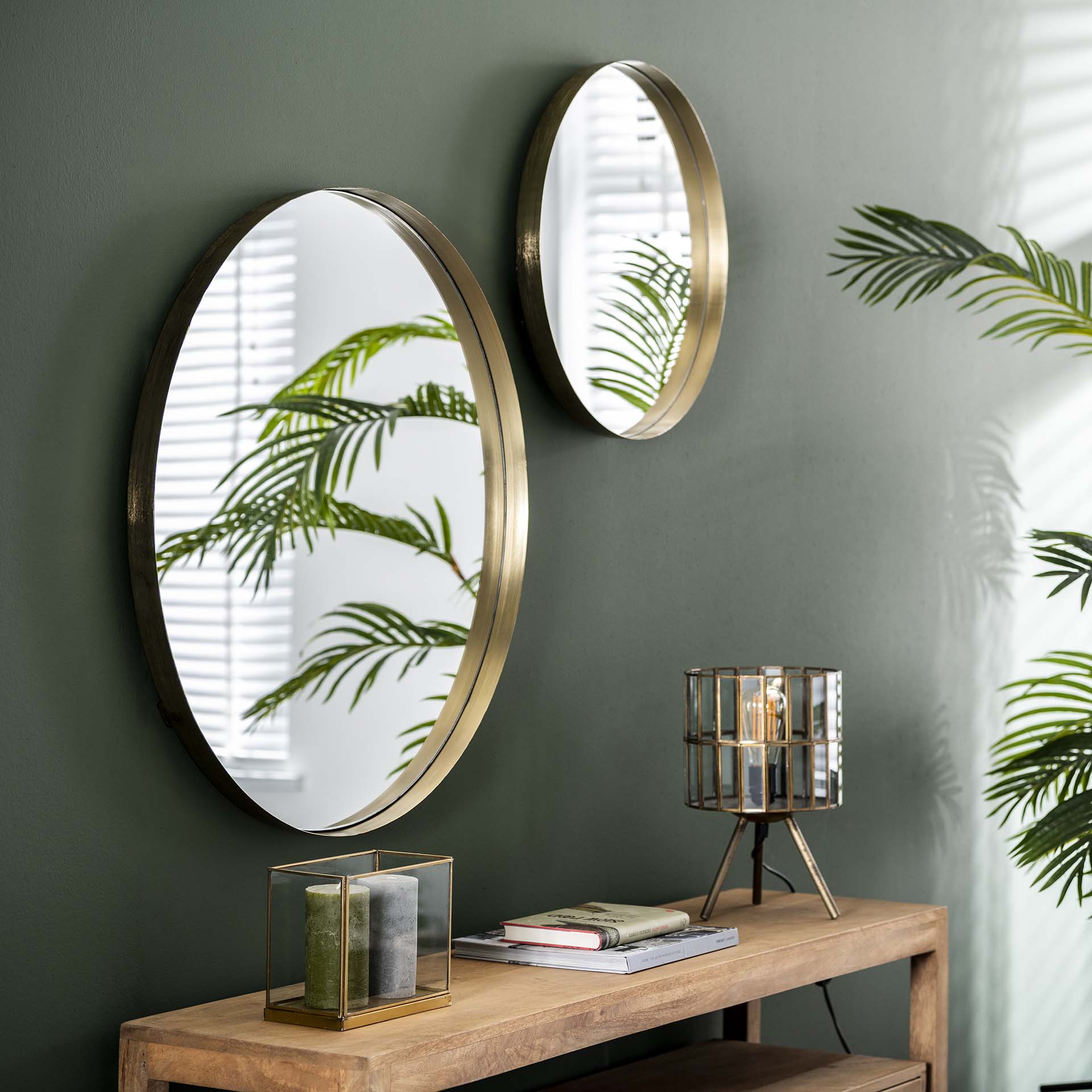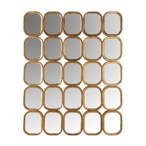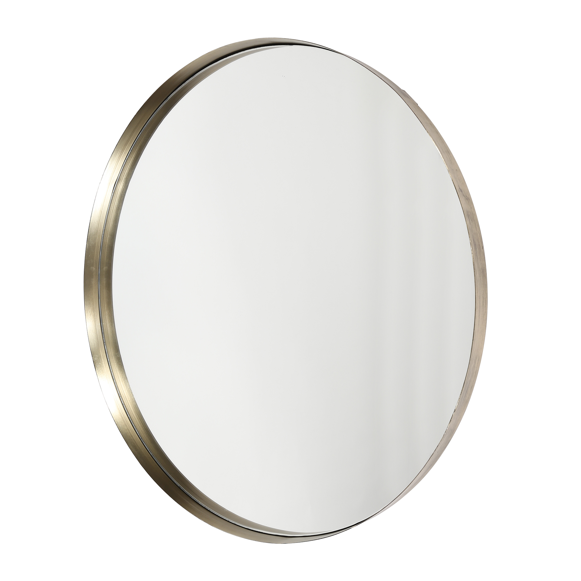 Šis gražus veidrodis pagamintas iš aukso arba antikvarinio sidabro spalvos metalo.Veidrodis turi pakeltą kraštą ,kad būtų ypač gražus efektas.Yra 50 ir 75 cm. skersmens.